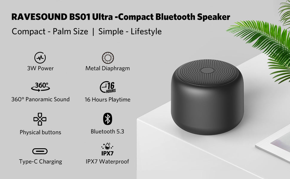 RAVESOUND BS01 Bluetooth Speaker utilizes a unique digital signal processor to enhance bass. Let's hear, feel and see this deep thundering bass.